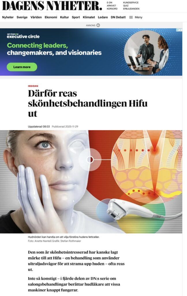 Dr. Anne Birgitte Undén medverkade i en artikelserie av DN med fokus på hud och estetiska behandlingar. Se ett smakprov på några av artiklarnas rubriker nedan.